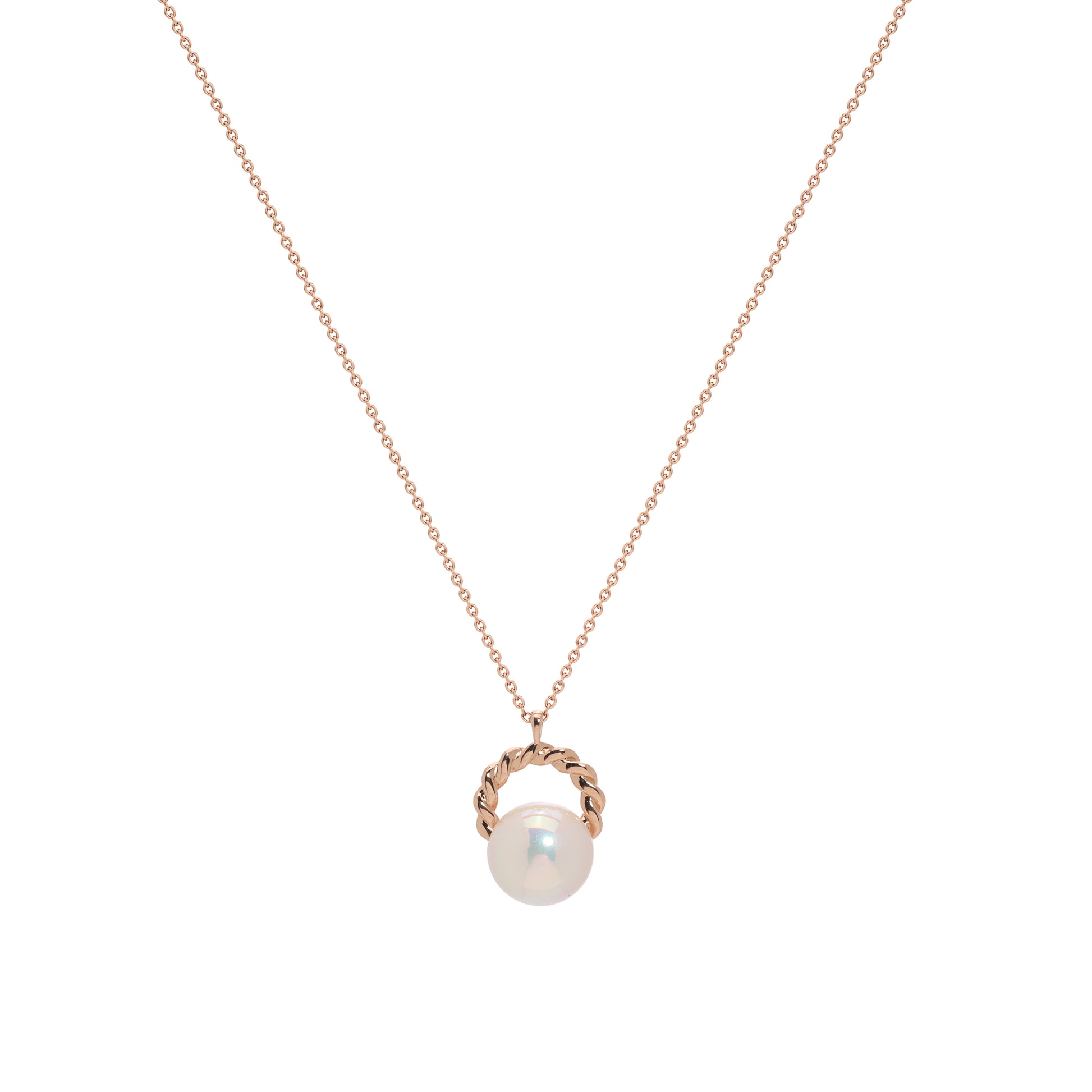 Elegant Pearl Pendant Necklace with Twisted Rose Gold Hoop – Timeless Sophistication