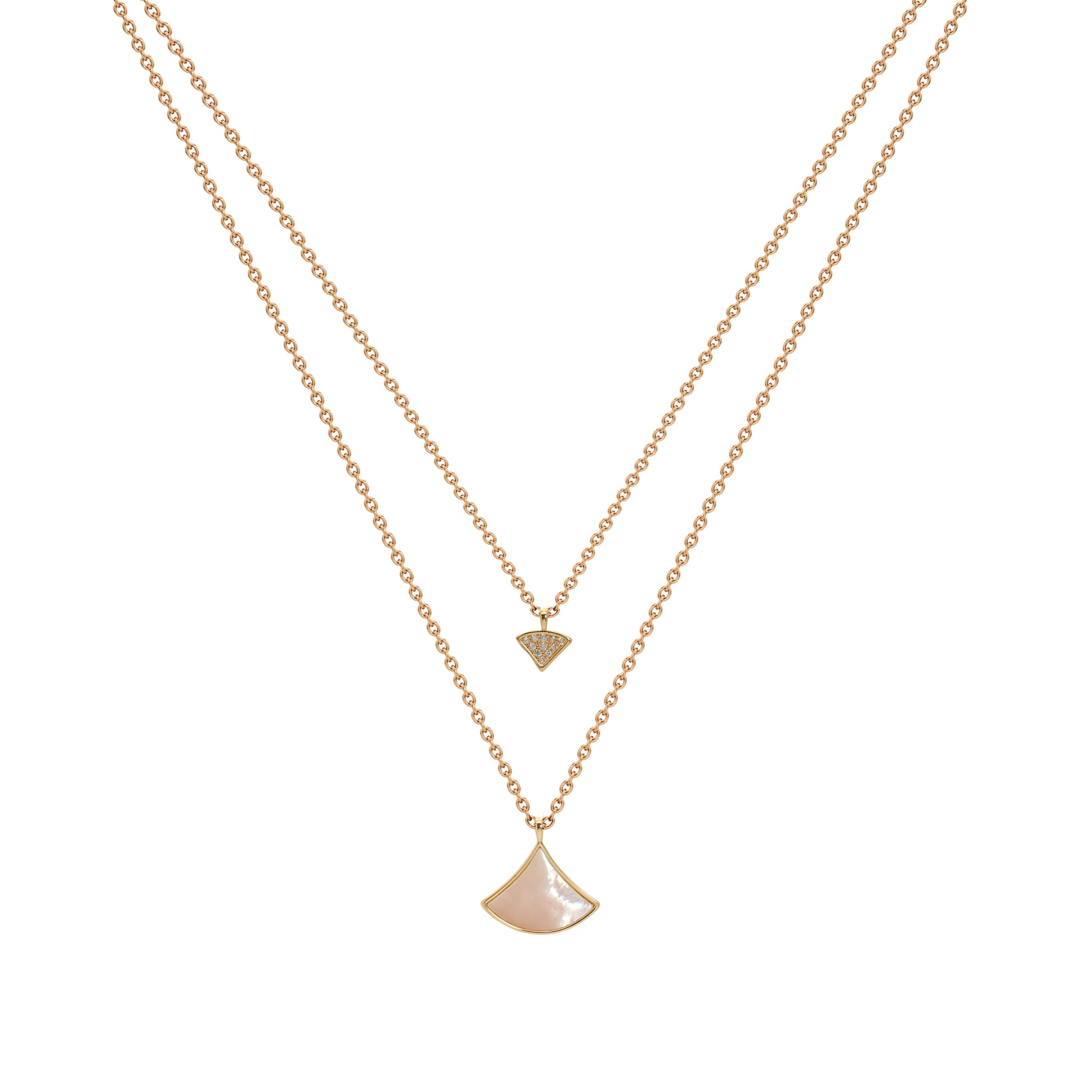 Layered Fan Pendant Necklace with Dual Chain Design – Rose Gold Elegance