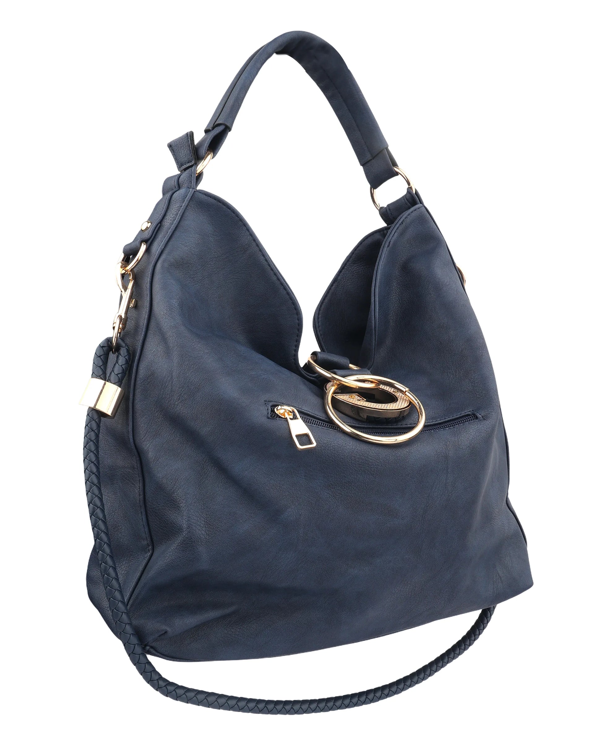 The "Celeste" Ring-Detail Slouchy Hobo Bag - Navy & Gold